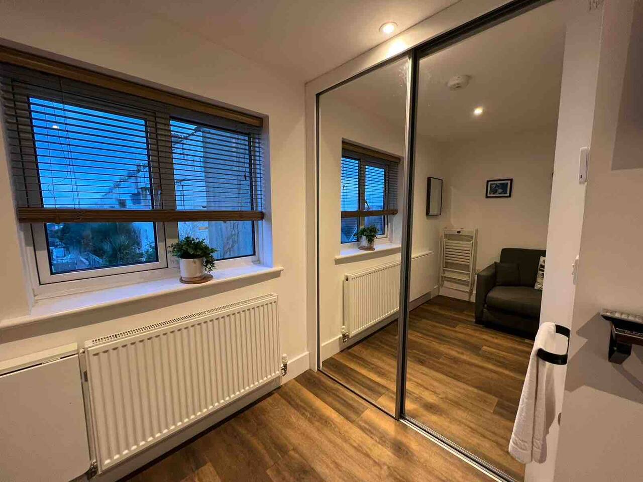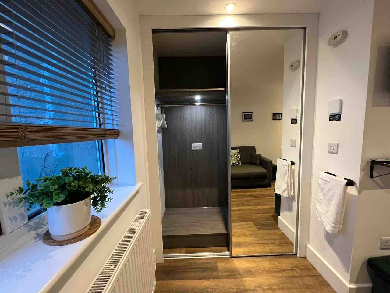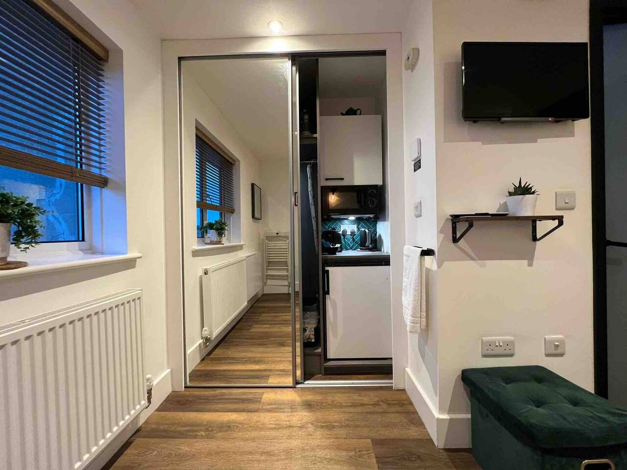 The suite has a kitchenette with microwave, toaster and kettle. A stylish wet room, luxurious double bed, as well as a small dining table, WiFi, a Smart TV and a sea view from the living room window. Whether you’re a single traveller / business person / couple or group of friends visiting, you’ll be comfortable in this little apartment and find everything you need.
